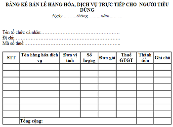 Bảng kê bán lẻ hàng hóa dịch vụ dưới 200.000