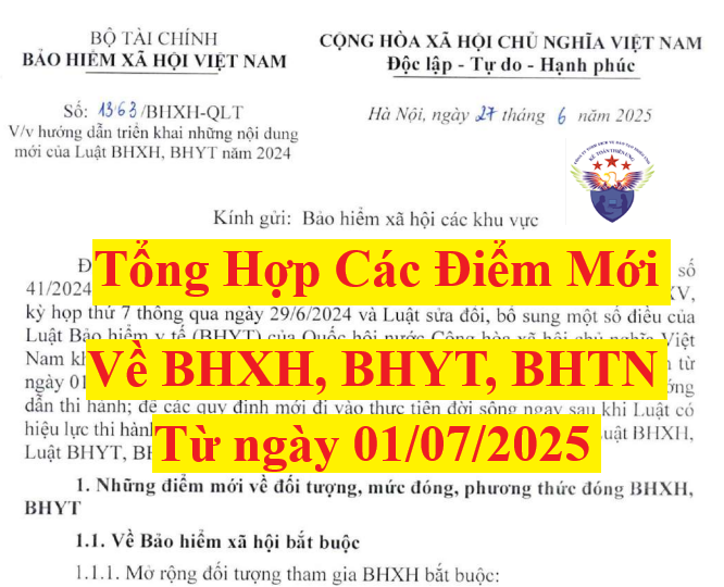 Ngày 27 tháng 6 năm 2025 Bảo hiểm xã hội Việt Nam đã ban hành Công văn 1363/BHXH-QLT năm 2025 về việc hướng dẫn triển khai những nội dung mới của Luật BHXH, BHYT áp dụng kể từ ngày 1/7/2025