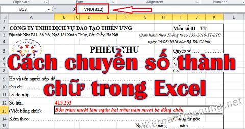 Cách chuyển số thành chữ trong Excel 2010, 2013, 2016, 2019