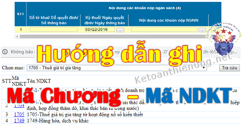 Đặc biệt: Khi nộp thuế điện tử thì Mã chươngsẽtự động hiển thịtrên giấy nộp tiền thuế điện tử rồi, các bạn không cần nhập Mã chương nhé.