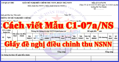 Hướng dẫn cách viết giấy đề nghị điều chỉnh thu NSNN mẫu C1-07a/NS; Cách điền mẫu C1-07a/NS theo thông tư 19/2020/TT-BTC mới nhất khi nộp tiền thuế bị sai sót.