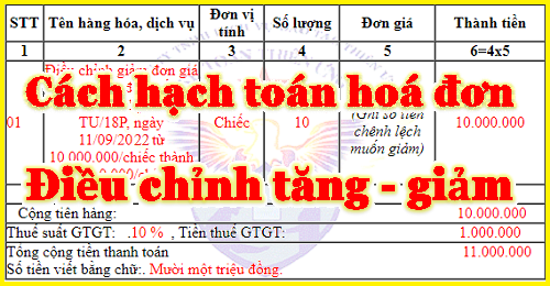 cách hạch toán hoá đơn điều chỉnh giảm tăng doanh thu thuế gtgt