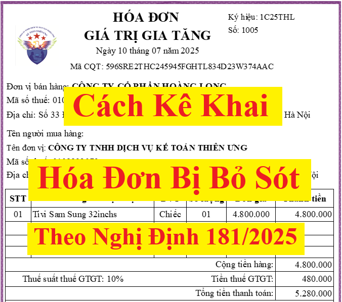 => Công ty Kế Toán Thiên Ưng sẽ thực hiện kê khai hóa đơn đầu vào bị bỏ sót này vào kỳ phát hiện là kỳ quý 3/2025
