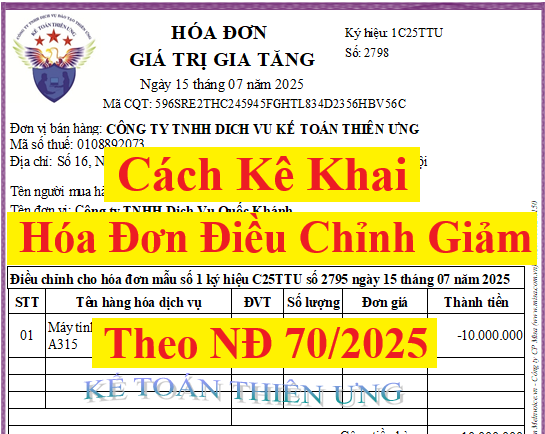 Cách kê khai hóa đơn điều chỉnh giảm theo Nghị định 70/2025