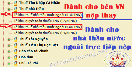 – Chọn: “Thuế nhà thầu” -> “Tờ khai thuế nhà thầu nước ngoài – 01/NTNN”: