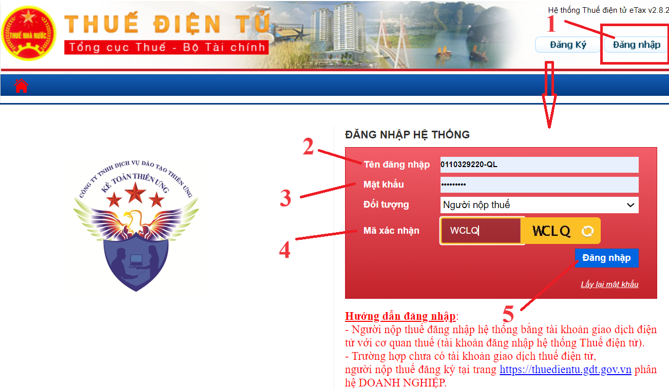 Bước 3: Đăng nhập vào hệ thống thuế điện tử trên trang thuedientu.gdt.gov.vn