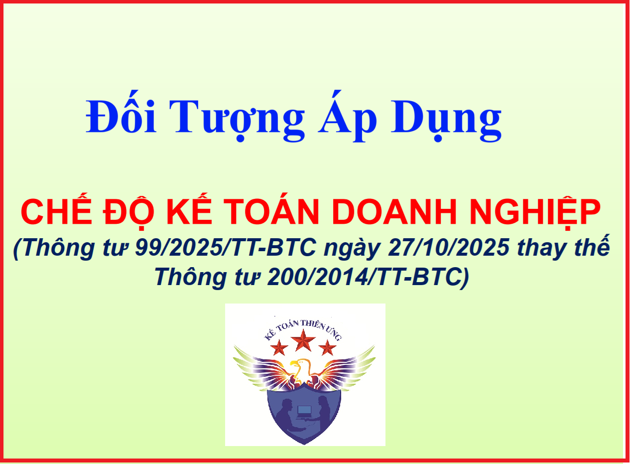 + Các doanh nghiệp đang áp dụng chế độ kế toán theo Thông tư 200/2014/TT-BTC thì:bắt từ đầu ngày 01/01/2026 (từ năm tài chính 2026) phải chuyển sang áp dụng chế độ kế toán theo Thông tư 99