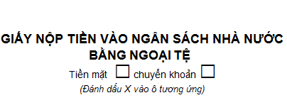 Giấy nộp tiền vào ngân sách nhà nước bằng ngoại tệ theo TT 119