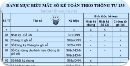 3) Hệ thống sổ sách kế toán theo Thông tư 133(Áp dụng cho DN nhỏ và vừa)