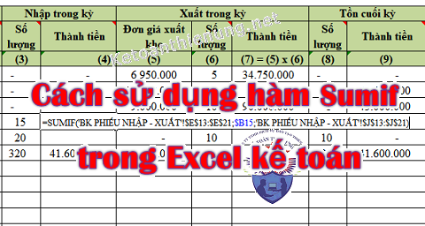 Hướng dẫn sử dụng hàm Sumif trong Excel kế toán như: Cách dùng hàm Sumif để kết chuyển các bút toán cuối kỳ, tổng hợp số liệu từ NKC lên bảng cân đối phát sinh, làm Bảng tổng hợp Nhập xuất tồn …