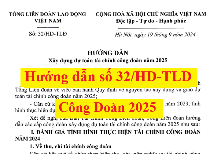 HƯỚNG DẪN XÂY DỰNG DỰ TOÁN TÀI CHÍNH CÔNG ĐOÀN NĂM 2025 – Căn cứ Luật Công đoàn năm 2012; Điều lệ Công đoàn Việt Nam;