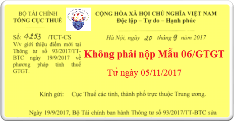 2. Bỏhướng dẫn nộp Mẫu 06/GTGT khichuyển đổi phương pháp tính thuế GTGT.