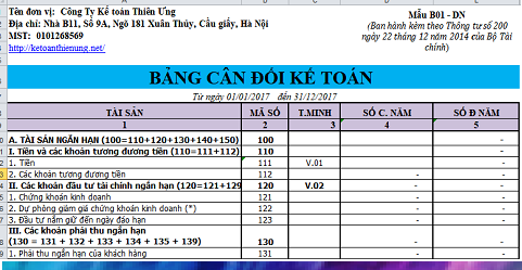 Chú ý: Kể từ ngày 1/1/2017 chỉ có Bảng cân đối kế toán theo Thông tư 200, màKHÔNG có Bảng cân đối kế toán theo Thông tư 133 -> Thay vào đó là Báo cáo tình hình tài chính theo Thông tư 133