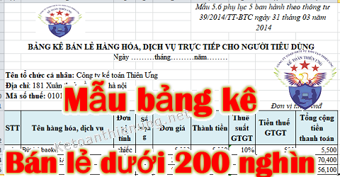 Mẫu bảng kê bán hàng cho khách lẻ dưới 200 nghìn file Excel