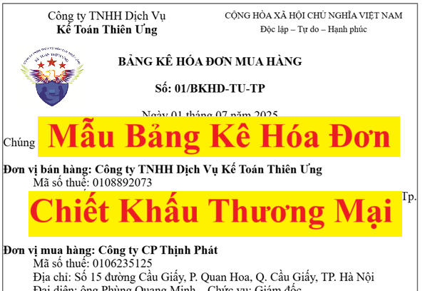 Mẫu bảng kê hóa đơn chiết khấu thương mại theo Nghị Định 70/2025