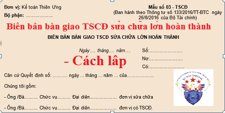 Góc trên bên trái của Biên bản bàn giao TSCĐ sửa chữa lớn hoàn thành ghi rõ tên đơn vị (hoặc đóng dấu đơn vị), bộ phận sử dụng. Khi có TSCĐ sửa chữa lớn hoàn thành phải tiến hành lập Ban giao nhận gồm đại diện bên thực hiện việc sửa chữa và đại diện bên có TSCĐ sửa chữa.