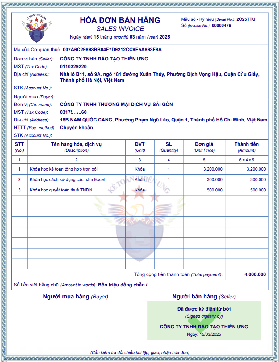 • Mẫu Hóa Đơn Điện Tử
