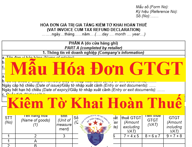 HÓA ĐƠN GIÁ TRỊ GIA TĂNG KIÊM TỜ KHAI HOÀN THUẾ (VAT INVOICE CUM TAX REFUND DECLARATION) ……..ngày….tháng……năm….(…..day …. month …. year….)