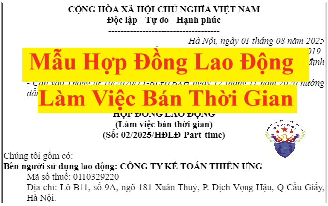 HỢP ĐỒNG LAO ĐỘNG (Làm việc bán thời gian)