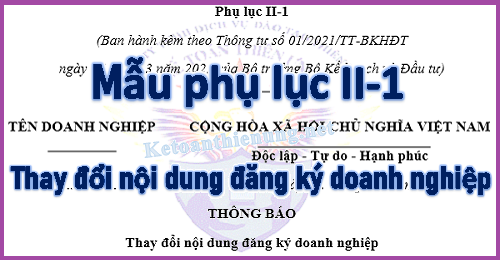 Mẫu Phụ lục II-1 Thông báo Thay đổi nội dung đăng ký doanh nghiệp theo Thông tư 01/2021 mới nhất -> Phụ lục ii-1 đăng ký thay đổi tên, địa chỉ doanh nghiệp, ngành nghề kinh doanh…