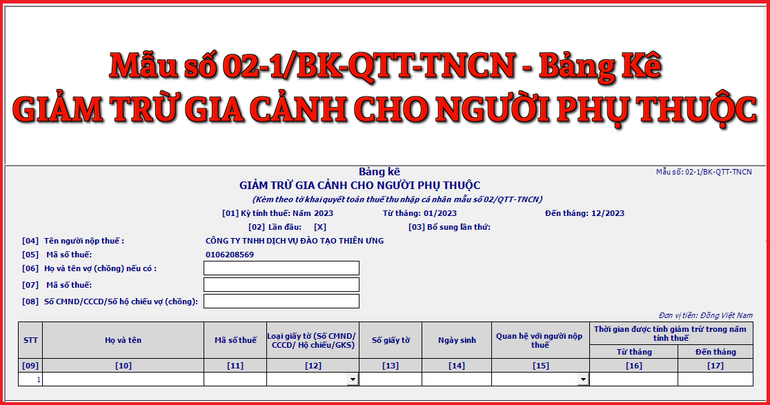 [17] Đến tháng: Là thời điểm kết thúc tính giảm trừ người phụ thuộc trong năm tính thuế theo thực tế phát sinh.