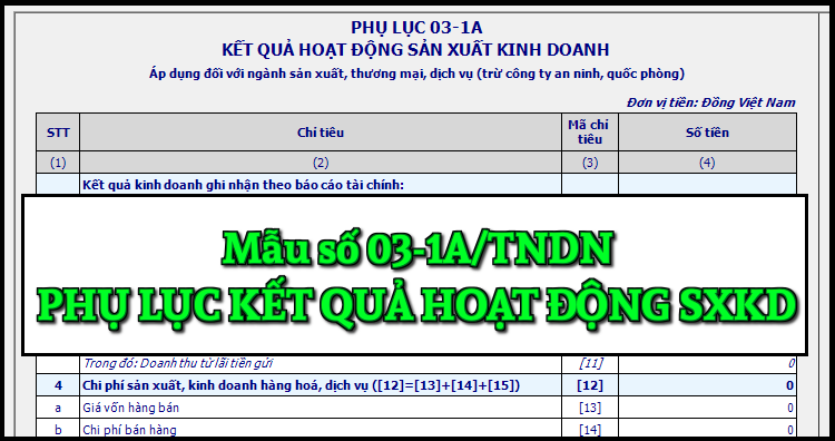 Mẫu số 03-1A/TNDN Phụ lục kết quả hoạt động sản xuất kinh doanh theo TT 80/2021
