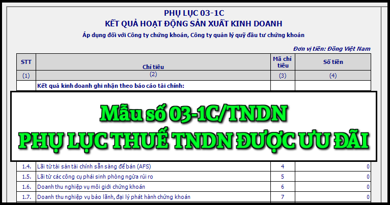 Mẫu số 03-1C/TNDN Phụ lục thuế thu nhập doanh nghiệp được ưu đãi theo TT 80/2021