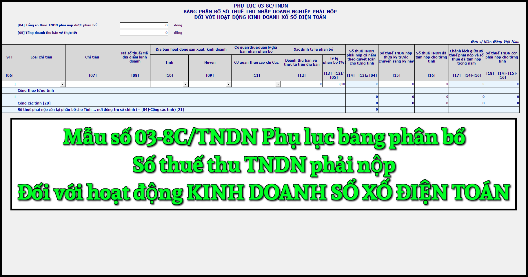 [04] Tổng số thuế TNDN phải nộp được phân bổ: ……………đồng