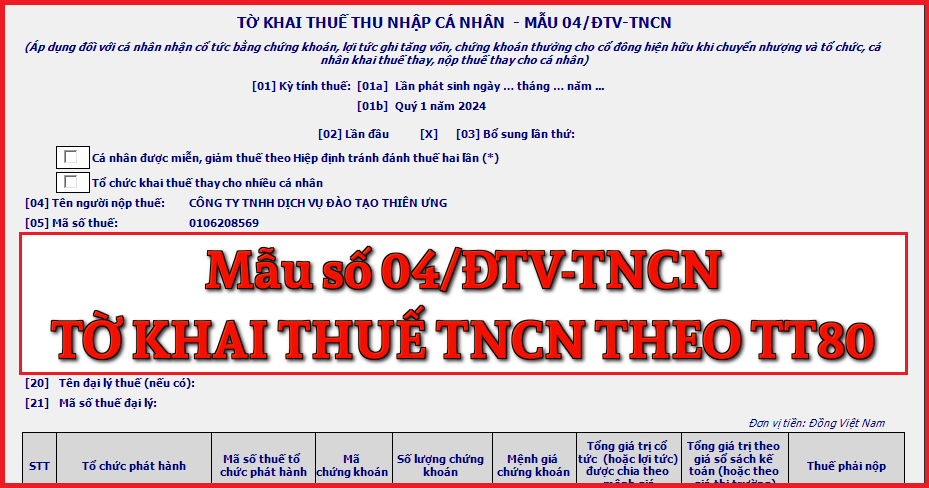 Mẫu số 04/ĐTV-TNCN Tờ khai thuế thu nhập cá nhân theo TT 80/2021