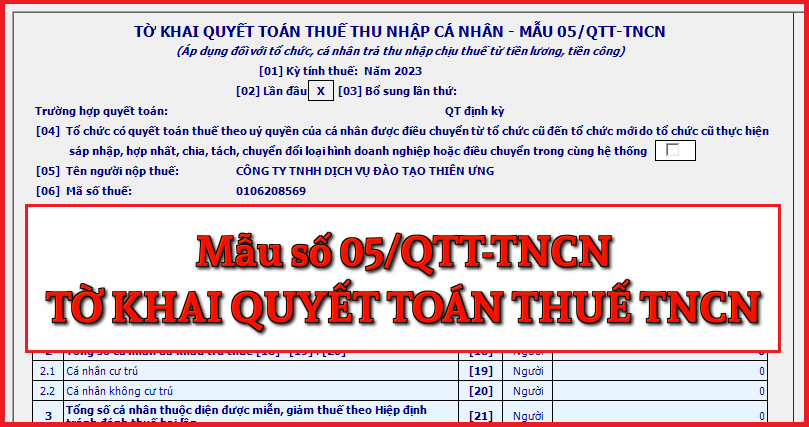 [01] Kỳ tính thuế: Ghi theo năm của kỳ thực hiện khai thuế. Tổ chức, cá nhân trả thu nhập quyết toán thuế TNCN theo năm dương lịch.