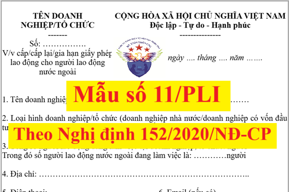 Mẫu số 11/PLI cấp giấy phép lao động cho người nước ngoài