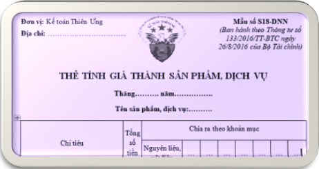 Mẫu Thẻ tính giá thành sản phẩm, dịch vụ theo Thông tư 133 và 200