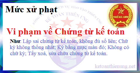 Quy định mức phạt vi phạm về chứng từ kế toán như: Mức phạt mất chứng từ kế toán; Lập sai chứng từ kế toán; Chữ ký không thống nhất; Ký bằng mực màu đỏ; Không có chữ ký; Ký bằng dấu khắc sẵn; Không dịch chứng từ kế toán; Tẩy xoá, sửa chữa chứng từ kế toán…