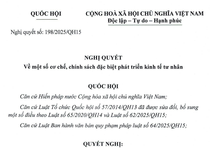 Ngày 17/5/2025, Quốc hội thông qua Nghị quyết 198/2025/QH15 về một số cơ chế, chính sách đặc biệt phát triển kinh tế tư nhân, trong đó đề cập nhiều chính sách miễn thuế.