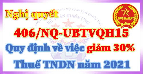 Nghị quyết 406/NQ-UBTVQH15 giảm 30% thuế TNDN năm 2021