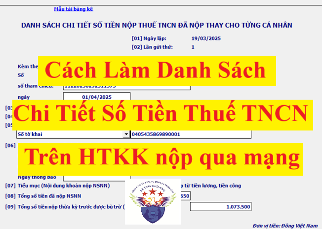 Hướng dẫn cách làm danh sách chi tiết số tiền thuế TNCN đã nộp thay cho từng cá nhân trên phần mềm HTKK để nộp qua mạng