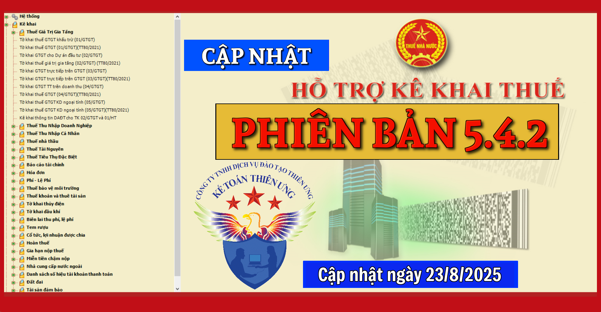 Ngày 23/8/2025 Tổng cục Thuế thông báo về việc Nâng cấp ứng dụng Hỗ trợ kê khai (HTKK) 5.4.2