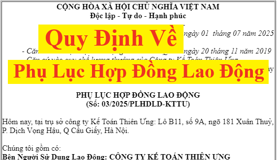 Quy định về phụ lục hợp đồng lao động mới nhất năm 2025