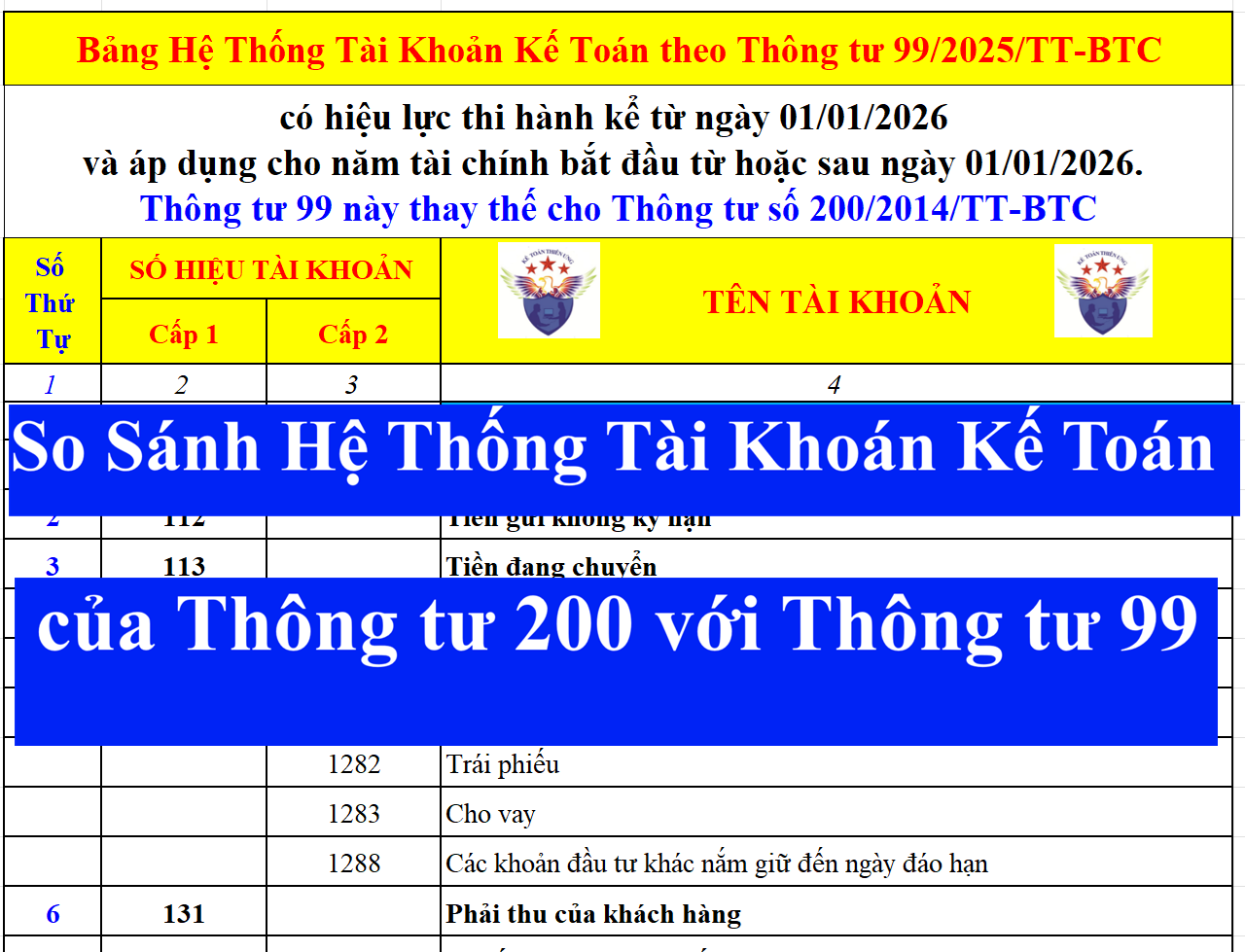 So sánh tài khoản kế toán Thông tư 200 và Thông tư 99