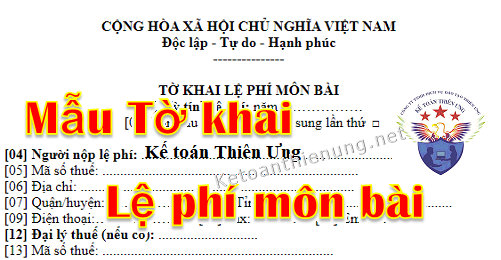 TỜ KHAI LỆ PHÍ MÔN BÀI