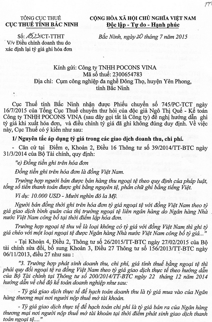 Tỷ giá ghi trên hóa đơn GTGT năm 2016 theo TT 26