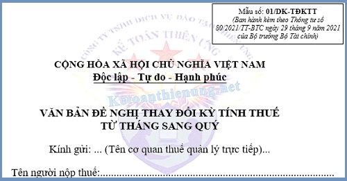 mẫu 01/đk-tdktt văn bản đề nghị thay đổi kỳ tính thuế từ tháng sang quý