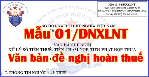 Văn bản đề nghị xử lý số tiền thuế, tiền chậm nộp, tiền phạt nộp thừa Mẫu 01/DNXLNT theo Thông tư 80/2021/TT-BTC – Văn bản đề nghị hoàn thuế thu nhập cá nhân.