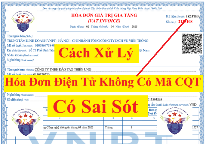 Hướng dẫn cách xử lý hóa đơn điện tử không có mã của cơ quan thuế có sai sót theo quy định mới nhất năm 2025 tại Nghị định 70/2025/NĐ-CP sửa đổi Nghị định 123/2020/NĐ-CP quy định về hóa đơn, chứng từ.